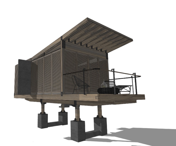 The objective is to design a modular cabin in wood and steel elements, capable of being transported in the trunk of a pickup truck with a load capacity of 1.5 tons.